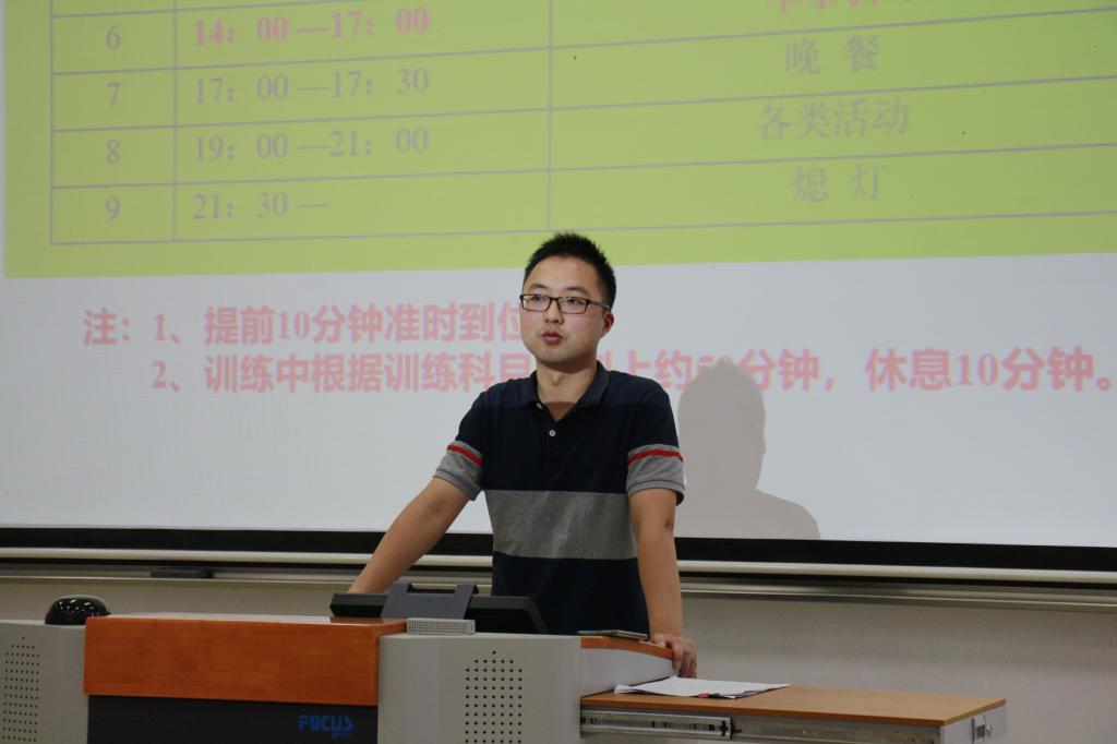 其中,鞠老师重点强调了军事训练与内务整理这两个重要内容。在内务整理方面,鞠老师力求学生做到井井有条、一尘不染严格,他表示,“内务的严整更能提现一个人的条理和自我约束力”。在日常训练方面,鞠老师希望20级新生能做到风雨无阻,坚持训练,用积极的态度面对重重困难,真正以一个军人的意志来要求自己,以达到军训培养个人坚毅品质的目的。